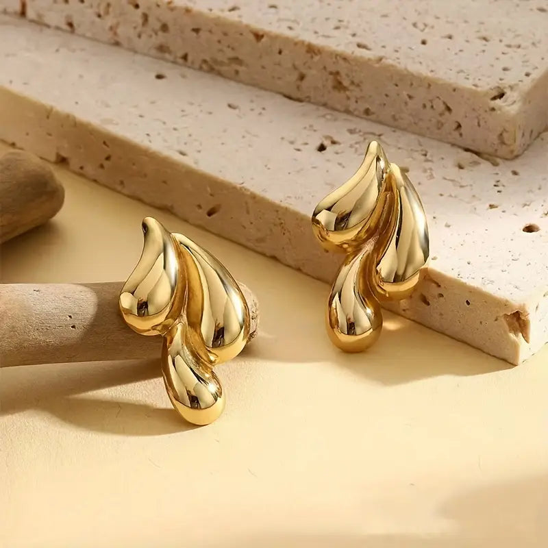 ¡Eleva tu estilo al siguiente nivel! Estos aretes con diseño de tres gotas entrelazadas son la pieza que le faltaba a tu look. Su acabado brillante, peso ligero y forma orgánica de mediano tamaño le dan un toque único a cualquier outfit, desde el más casual hasta el más elegante ✨🤩