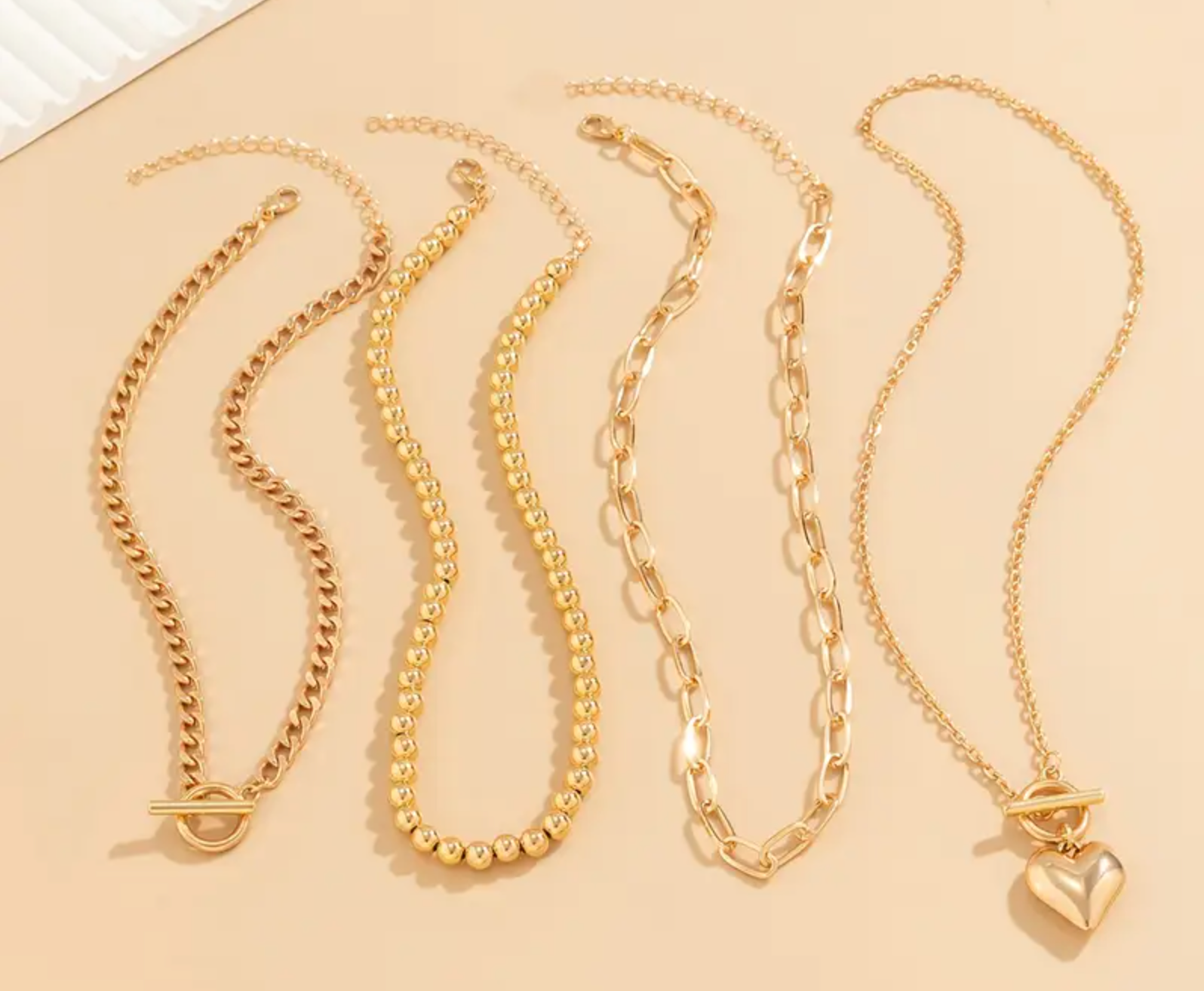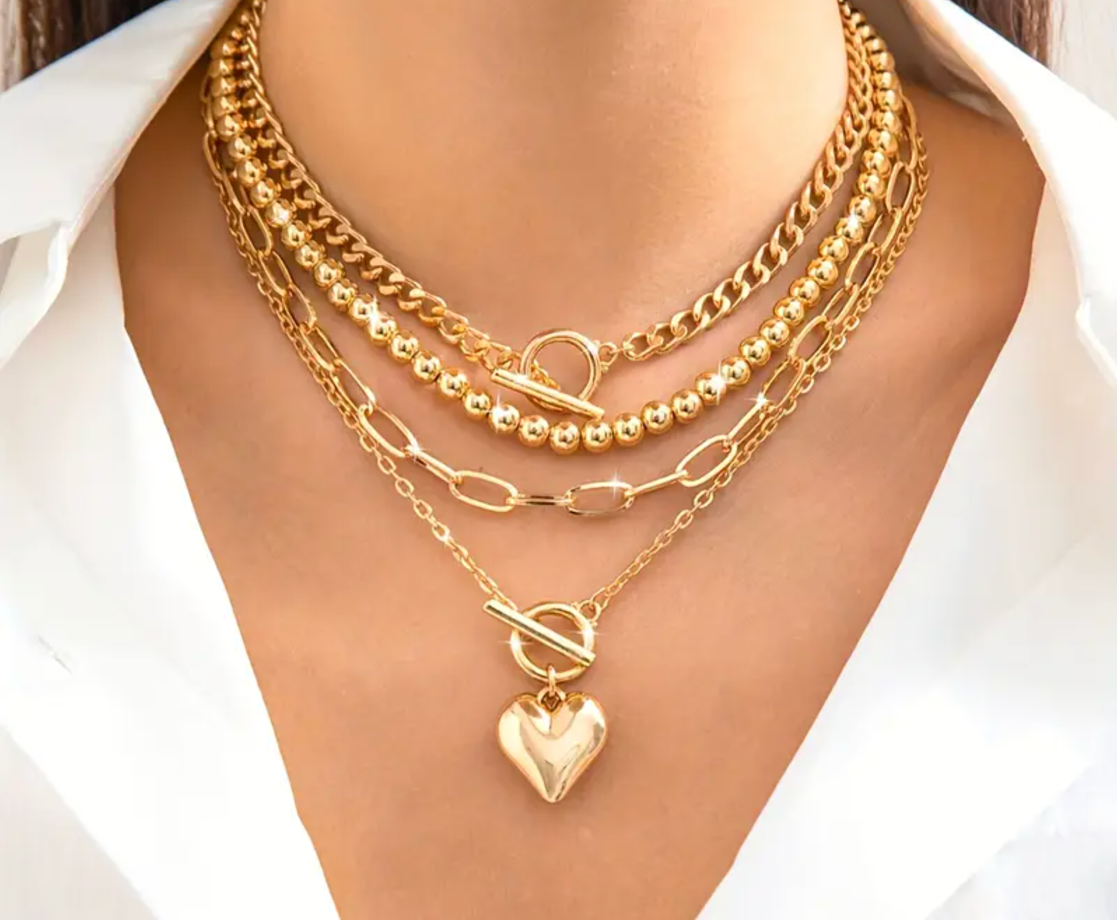 Un diseño poderoso y elegante que roba miradas 💫. Este collar en capas combina eslabones, bolitas y un dije de corazón que representa amor y estilo en su máxima expresión 💛. Ideal para usar con camisas, vestidos o tus looks más chic — porque el dorado nunca pasa de moda. 💕